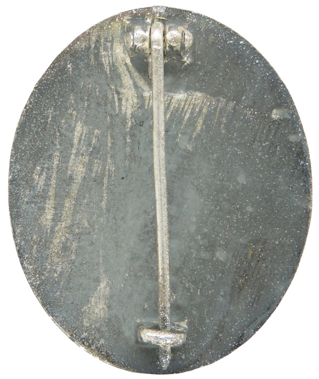 BACKGROUND: The wound badge was originally established on March 3RD 1918 by King Wilhelm II to recognise the sacrifice of those wounded during WWI. The badge was instituted in three classes, of black, silver and gold with the class bestowed reflecting the number or severity of the wounds received. On May 22ND 1939 Adolf Hitler re-instituted a slightly modified version of the wound badge with the addition of a swastika to the WWI pattern badge for award to German volunteers who had been wounded supporting the Spanish Nationalist Falangist Generalissimo Francisco Franco against the communist allied Republican Loyalist party in the Spanish Civil War. (July 1936-March 1939). With the outbreak of WWII, on September 1ST 1939, Hitler once again re-instituted another slightly modified version of the wound badge by altering the WWI pattern helmet on the badge to the newly designed M35 style helmet. The badge was awarded to both military and uniformed non-military personnel and later, (March 1943), to civilian personnel who received wounds as a result of enemy actions. The silver wound badge was awarded for three or four wounds, or if the wound was very severe, ie: loss of limb, blindness, etc..