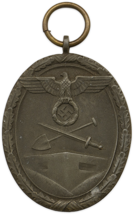 BACKGROUND: The West Wall Medal was instituted by Adolf Hitler on August 2ND 1939 to recognize military personnel, including civilian employees, who assisted in the planning, construction or defence of German fortifications on the western border. Personnel who had been awarded the October 1ST, and/or the Memel Commemorative Medals were ineligible for award of the West Wall Medal. The original bestowal of the West Wall Medals ceased as of January 1ST 1941. On October 10TH 1944, bestowal of the West Wall Medal was re-instituted as over 200,000 personnel were assigned to strengthen the German fortifications in anticipation of the western allies break-through into Germany. The West Wall Medal was only issued in one class and was to be worn on the left breast suspended from a ribbon.