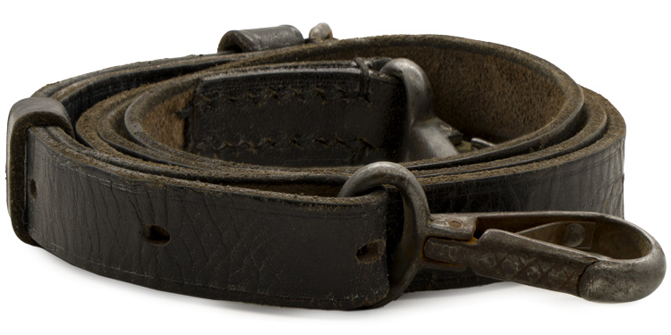 A supple black leather, faint markings, excellent condition. Scarce accessory.