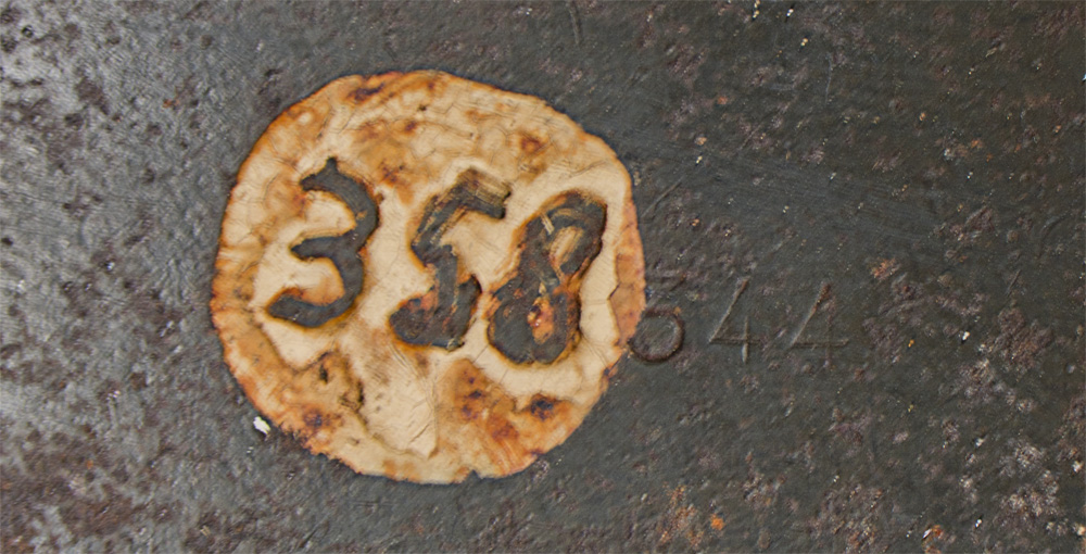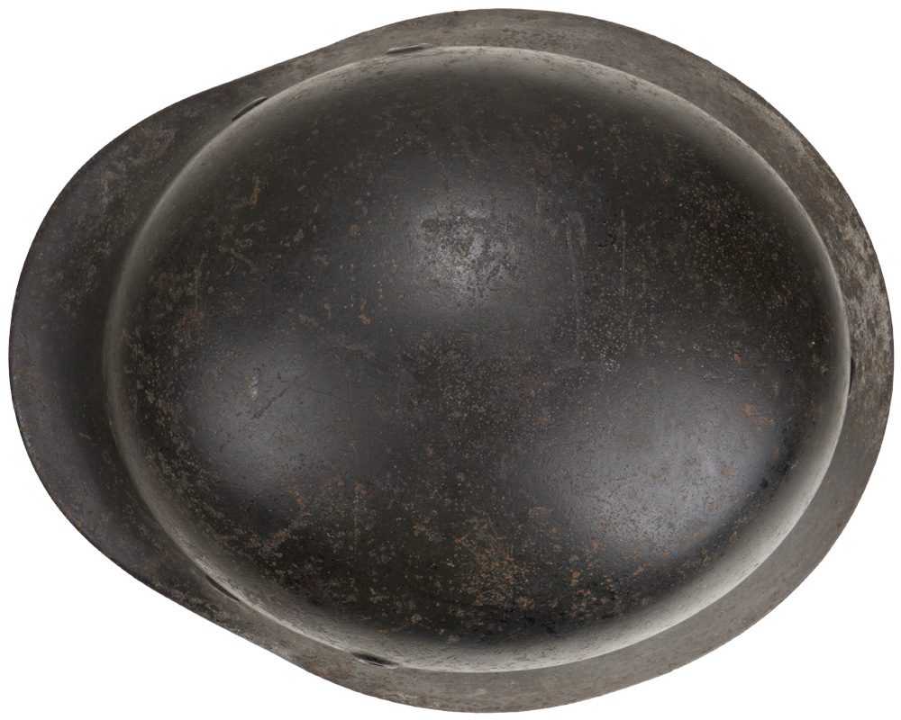 PHYSICAL DESCRIPTION: The stamped sheet steel construction helmet retains a good portion of its feldgrau paint. Decal has been removed. All three liner retaining rivets are intact. The interior of the helmet has a M31 style, leather liner with all of its fingers intact. Liner looks replaced. Can’t make out any size or maker markings because wear/corrosion. I would guess probably a 66 shell.