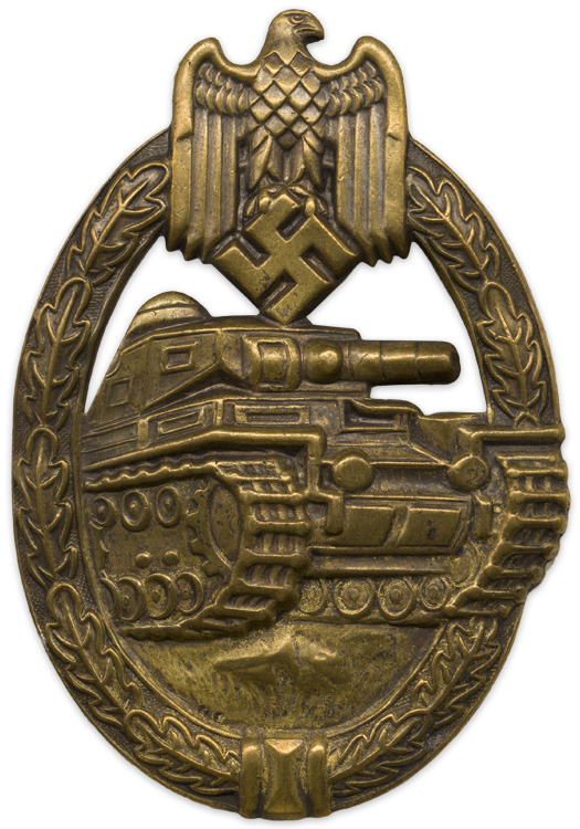 BACKGROUND: The Panzer Assault badge in bronze was introduced by Generaloberst Walther von Brauchitsch on June 1ST 1940 for award to Panzer Grenadier, medical, and armored car personnel who participated in three different armored assaults on three different days. The design of the badge was identical to the earlier instituted Panzer Assault Badge in silver for Panzer personnel except for the coloration.
