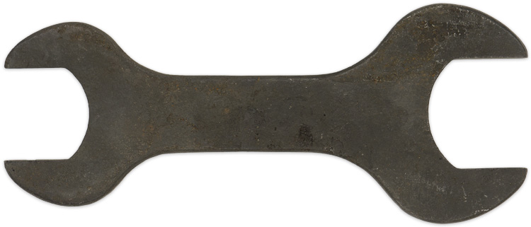 PHYSICAL DESCRIPTION: Tooled, steel construction double mouthed, wrench is roughly, 17.5cm long. Maker marked.