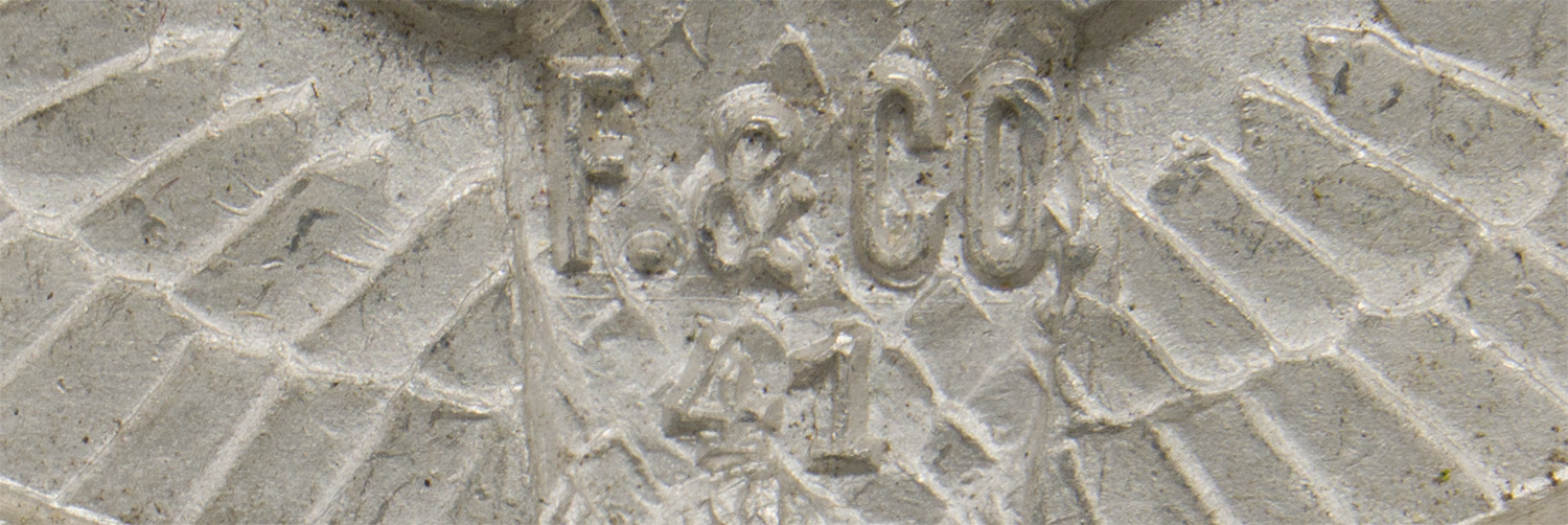 PHYSICAL DESCRIPTION: Second pattern, (Circa March 1935 May 1945), aluminum construction national eagle features outstretched wings, and is clutching a wreathed, canted swastika in it’s talons. Missing prongs. Maker marked and dated for 1941.