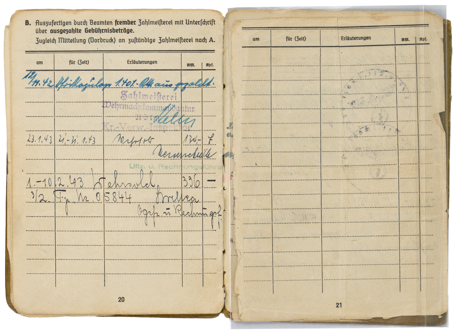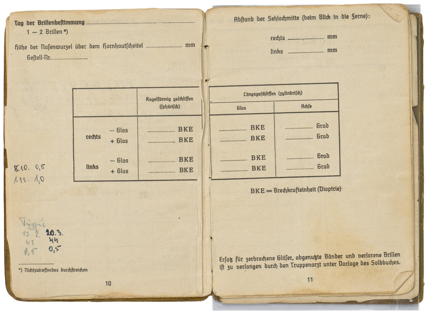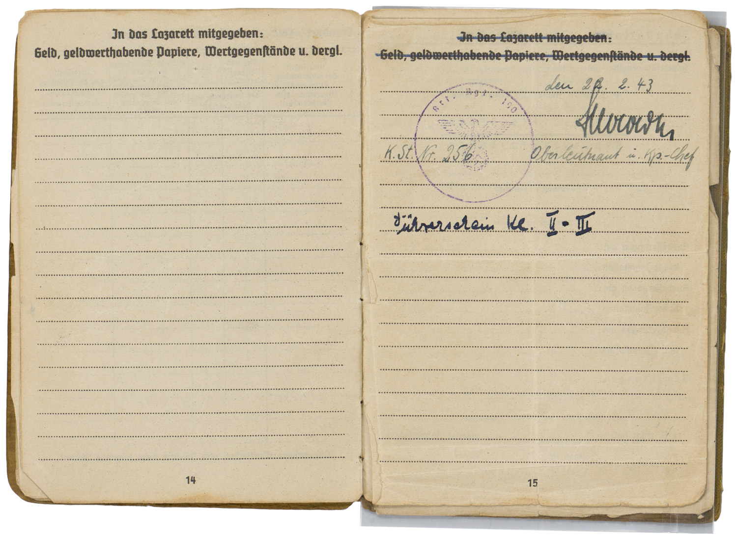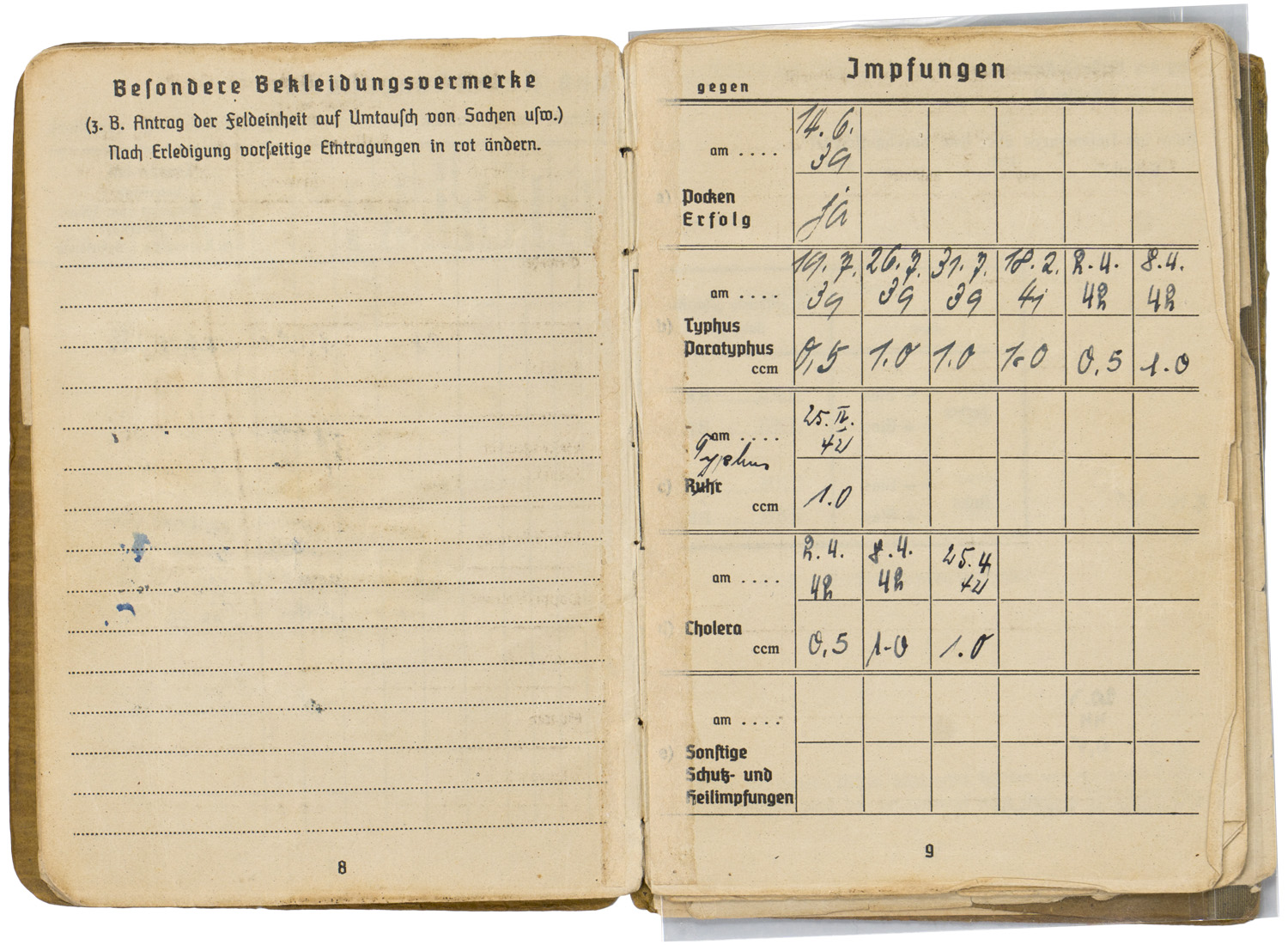 BACKGROUND: With the reintroduction of conscription in 1935, the OKW, Oberkommando der Wehrmacht, (High Command of the Armed Forces), activated the WEDs, Wehrersatzdienststelle, (Recruiting Offices), throughout Germany to process and administer the call up procedure. When individuals received their registration notice they were to report to the appropriate recruitment center where they would be issued a Wehrpass, (Military Pass), until they were inducted into active duty. Starting in the autumn of 1939, when an individual was inducted into active military service the Wehrpass was exchanged at the recruitment office for the Soldbuch, (Pay Book), which remained in the recipient’s possession as his official military identification document. The recruitment office would retain the Wehrpass and chronicle the individual’s active service record in it. Generally if the individual was killed in battle the Wehrpass would be forwarded to his next of kin as a memento of his service time, while the Soldbuch would be returned to the appropriate WEDs, Wehrersatzdienststelle, (Recruiting Offices), for inclusion in the individual’s official records. Regulations concerning handling of the Soldbuch were quite strict and although an individual had to present his Soldbuch to higher ranking, military police and guard personnel, as requested, the Soldbuch was not to leave the owner’s sight and be returned immediately after examined. The only instance, besides death, that regulations permitted a Soldbuch to leave the recipient’s possession was in the case of legal arrest. Of Note: Heer, (Army), Luftwaffe, (Air Force), and Waffen SS, Schutz Staffel, (Armed Protection Squad), security and precaution regulations to have a photograph of the recipient placed in the Soldbuch wasn’t enacted until mid November 1943, while Kriegsmarine, ({War} Navy), regulations decreed the Soldbuch's were to have the recipient’s photograph applied as early as September 1941. The Heer, Luftwaffe and Waffen SS regulations stated that training units have the photographs applied in the Soldbuch by April 1944 and combat units by December 1944, although the regulations were not always strictly adhered to. Of Interest: The Reich conscription laws of 1935 dictated that each of the three branches of service would be allocated a percentage of the available recruits according to their manpower requirements with the Heer being allotted the lions share of roughly 66% of eligible personnel followed by the Luftwaffe who were accorded roughly 25% with the Kriegsmarine receiving the remaining 9% of personnel. Also Of Interest: In January 1945 the Ergänzungsstelle der Waffen SS was combined with the army’s Wehrersatzdienststelle and was renamed Ergänzungsstellen des Heeres und der Waffen SS, (Replacement Centers of the Army and the Armed SS). Also Of Note: It appears that the majority of Soldbuch's and Wehrpass's were manufactured by the Metten & Co, Nationaler Werbedruck firm of Berlin SW 61, "Metten & Company National Recruiting/Enlistment Printing 61 Southwest Berlin).