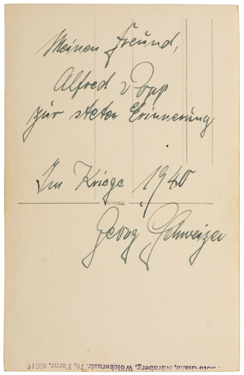 A standard size, black and white photograph postcard that bears handwriting to the reverse, including a 1940 date.