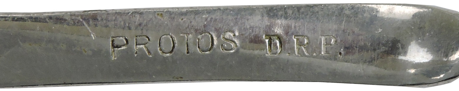 Steel construction with nickel/silver plate. Roughly 13cm in length. Make marked "PROTOS" & "D.R.P.". Shows period use and wear, but over all nice condition. Still functions.