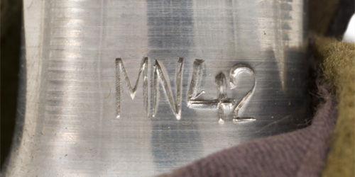 PHYSICAL DESCRIPTION: Bakelite cup with black leather harness. Maker marked "MN42". All straps, buckles and snaps are complete. Comes with a belt loop D-Ring.
