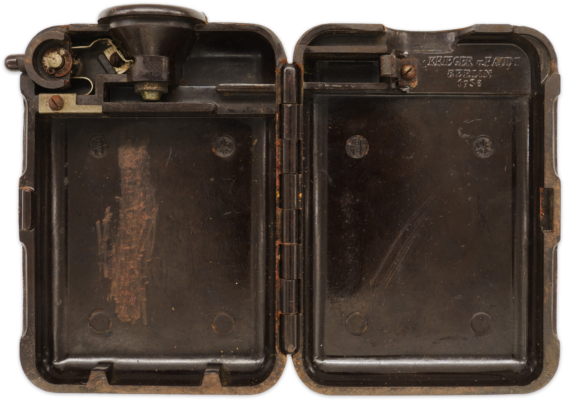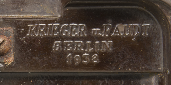 A bakelite, maker marked, to the inside, "Krieger u. Faudt Berlin 1932" flashlight that measures approximately 3cm x 7cm x 10cm. Excellent condition with no chips, cracks or damage to the bakelite.