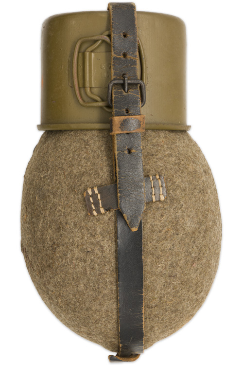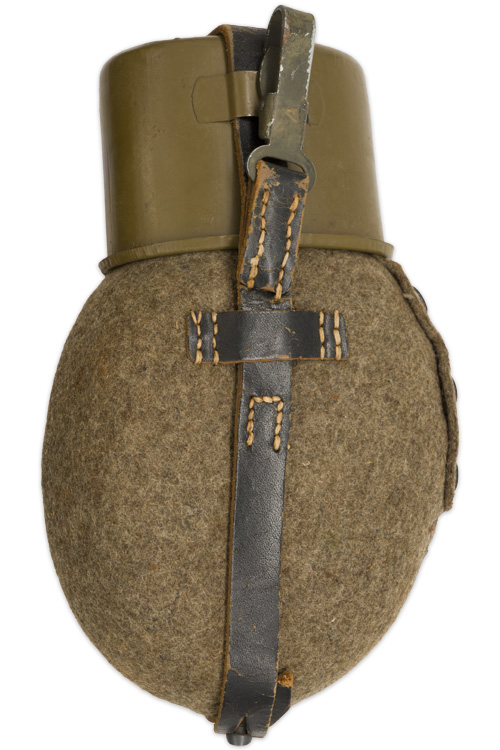 BACKGROUND: Introduced on March 23RD 1931 the standard issue M31 canteen was based on the WWI M1893 and M1907 canteens with minor modifications. Originally the M31 canteens were manufactured in aluminum but later as the aluminum was required for other more critically essential items the canteens began to be manufactured in steel. In late 1940 with the impending German entrance into the North African campaign the standard brown felt cover and leather retaining straps and carrying harness of the M31 canteen were altered to an olive drab felt cover and web straps for longer wear in the tropical climate. Another variant, developed in late 1941, was the replacement of the felt covers with a plastic impregnated wood covering for better durability. When issued the canteens came with an integral carrying straps and harness and regulations prescribed the assorted manners in which the canteen was to be carried with the most common form being to secure it to the bread bag suspended from the load carrying waist belt although other methods were also utilized. With potable fluids being such an essential item for an individuals well-being the canteen must be considered as a very important piece of personal kit.
