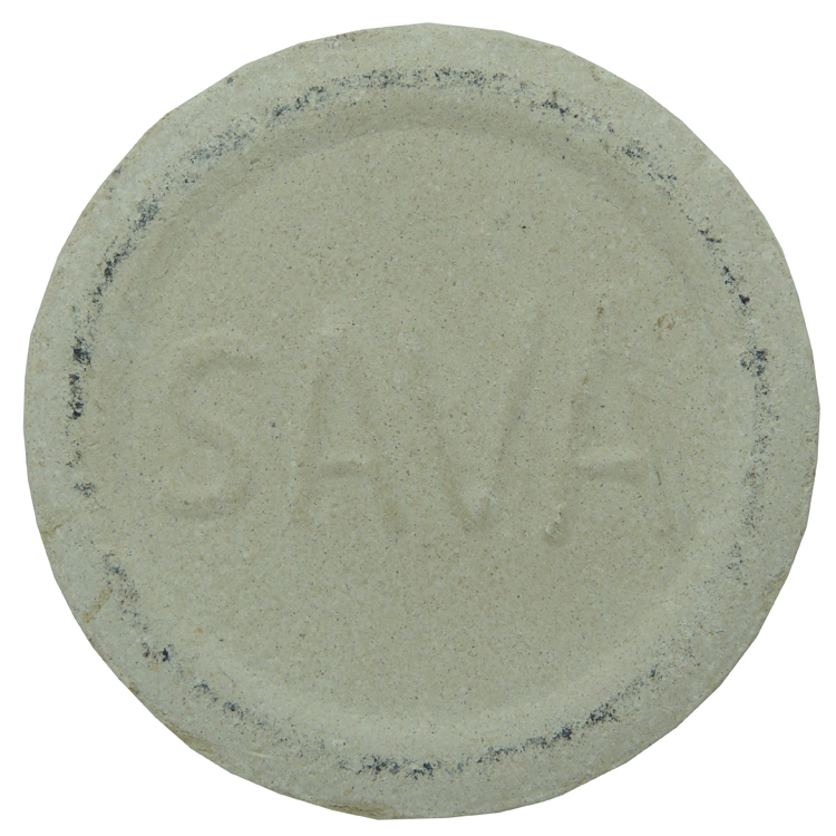 (Spülmittel)A circular bar of soap measuring approximately 6.5 in diameter that has embossed to the front "SAVA.."