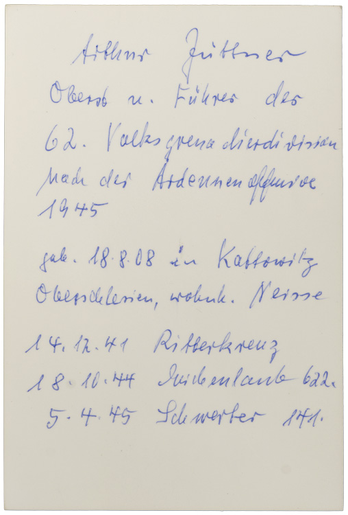A 10cm x 15.5cm modern printed photograph with post WW2 signature in marker to the bottom front, while handwritten details are written to the reverse of various awards. Not sure who this is, if anybody can ID for me, please email me at the below address. Thanks! Peter