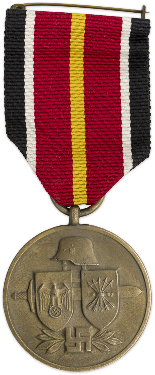 BACKGROUND: With the collapse of France in June 1940 Hitler appealed to Spain’s Generalissimo Francisco Franco to ally with the Axis as a form of repayment for Germany’s military assistance in the Spanish Civil war. Franco refrained from any commitment until the Germans invaded Russia which had provided aid to the Spanish communist Republican party during the Spanish Civil war. As a result it was decided that a Spanish Legion of roughly 4,000 personnel were to be raised and sent to the Russian front. When the call went out for the Spanish volunteers over 40,000, mostly Civil war veterans, came forward and it was decided to form a full Spanish Infantry Division. Since Spain had made no official declaration of war the Spanish volunteers were integrated into the German army as the 250TH Infantry Division but were most commonly referred to as the Spanish Blue Division. In appreciation for the Spaniards service, the Germans instituted the Bravery & Commemorative Medal of the Spanish Blue Division in January 1944 to recognize and reward the Spanish volunteers who served on the Russian front from August 1941 to October 1943. The criteria for bestowal of the award was very similar to the criteria for the Russian Front Medal with the main qualification being at least fourteen days of participation in combat on the Russian front. Of Note: Pressure from Great Britain for Spain to declare its neutrality, the decaying war situation and high Spanish casualties prompted Franco to request that the Germans release the Blue Division and return it to Spain, which they did in October 1943 although a token Spanish Legion did remain in service with the Germans. Also Of Note: Spain also created a specific medal for personnel of the Spanish Blue Division entitled, the Commemorative Decoration for Spanish Volunteers in the Battle against Bolshevism, 1941.
