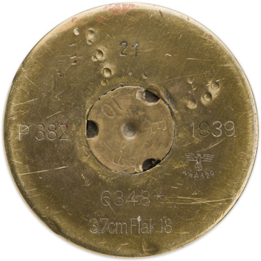 3.7cm (37x263mm B) Armor-Piercing Practice Flak 18 Cartridge. Case manufactured in 1939 by 'P382' ('HAK' Hanseatisches Kettenwerk GmbH, Hamburg). Total height of 35cm.