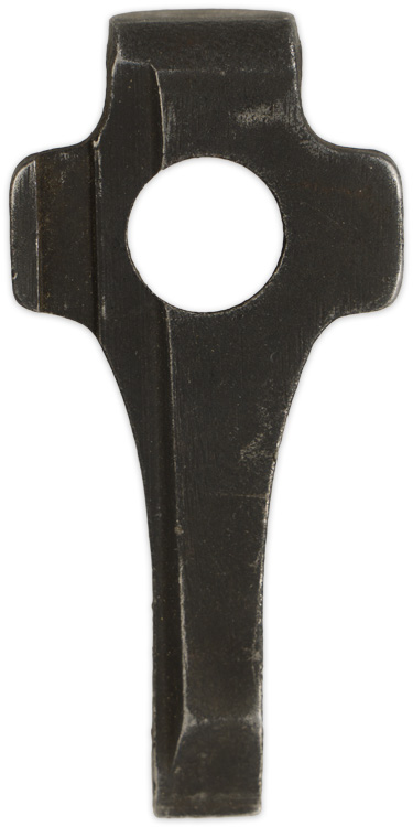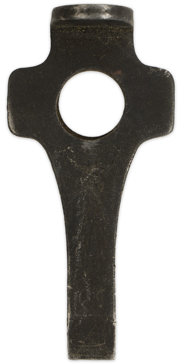 PHYSICAL DESCRIPTION: Roughly, 50mm x 24mm, small, blued, tooled steel, cruciform shaped tool, with a central circular hole, and slotted edge to one side and a turn up lip to one end. The original bluing is retained about 98% and the tool is well marked with an impressed waffen-amt stamp. Very nice.