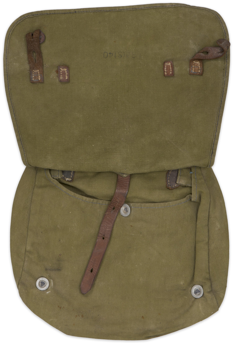 BACKGROUND: The standard issue M31 haversack, commonly referred to as the "breadbag", was based on the M1887 haversack and was adopted by the Wehrmacht as well as a wide variety of uniformed and non uniformed political and paramilitary organizations in 1931. The main variation in breadbags used by political and para military personnel as opposed to Wehrmacht personnel was the color. The breadbag was designed to carry rations, eating utensils and other assorted personal items.