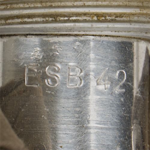 PHYSICAL DESCRIPTION: Tropical issue. Slightly larger size than the normal M31. Complete cover, straps and cup. Maker marked "ESB 42". Shows the expected period use, a few moth holes to the cover, but overall nice condition.