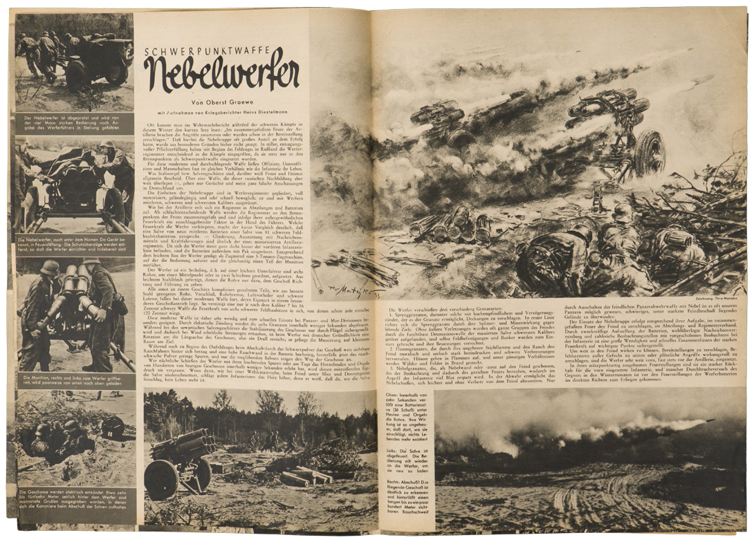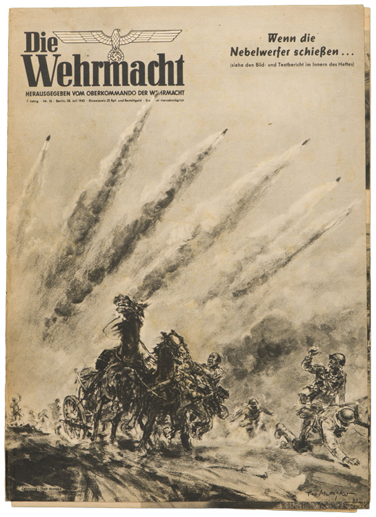 PHYSICAL DESCRIPTION: 7. Jahrgang, Nr.15 and dated for July 28, 1943. The 12 page magazine contains assorted photos and illustrations, as well as period advertisements and articles. Printed in Berlin.