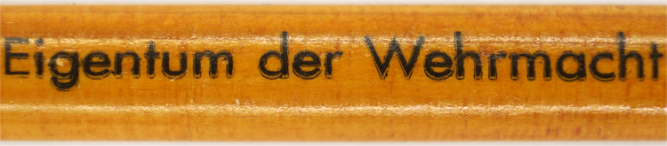 A 19.5cm long, wood and alloy construction fountain pen. The pen is marked, ‘Eigentum der Wehrmacht’. Comes with its original inkwell still is the factory packed box.