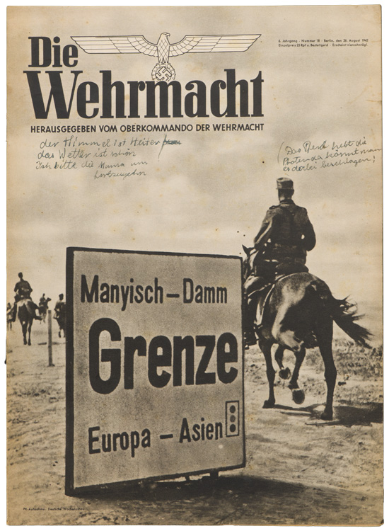 PHYSICAL DESCRIPTION: 6. Jahrgang, Nr.18 and dated for August 26, 1942. The 12 page magazine contains assorted photos and illustrations, as well as period advertisements and articles. Printed in Berlin.