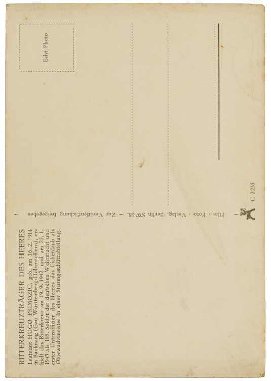 PHYSICAL DESCRIPTION: Original 10cm x 15cm postcard with a 1975 dated signature and dedication. Hugo Primozic.