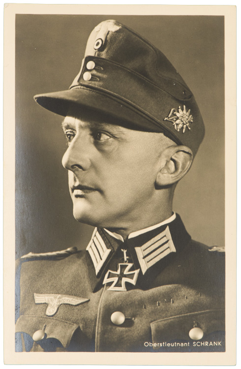 PHYSICAL DESCRIPTION: Original 9cm x 14cm postcard of Oberstleutnant Schrank. Superb image!