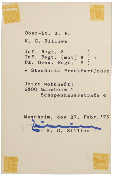 H045187 PORTRAIT PHOTOGRAPH "K.G. Zillies". (Photographie Postkarte)