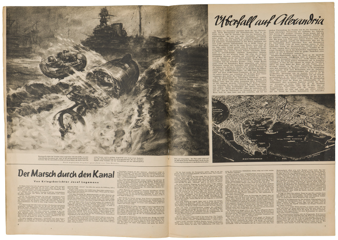 PHYSICAL DESCRIPTION: 6. Jahrgang, Nr.6 and dated for March 11,1942. The 12 page magazine contains assorted photos and illustrations, as well as period advertisements and articles. Printed in Berlin.