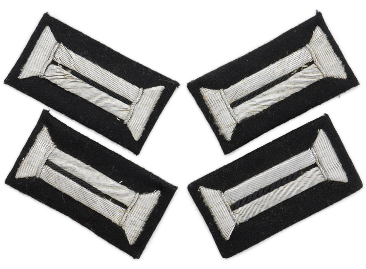 BACKGROUND: The M35 dress tunic was introduced for wear by all ranks on June 29TH 1935 as the walking out, parade and ceremonial dress with the piped, stone grey long pants. The design of the M35 dress tunic was based on the Imperial German army’s service tunic but was a different color and generally of much higher quality. Originally all personnel were issued two M35 dress tunics but manufacture was discontinued in late 1939 or early 1940 and was to be reinstated at the successful conclusion of the war. Regulations of March 21ST 1940 stated that the M35 dress tunics that were no longer suitable for dress wear were to be modified and reissued to personnel of the replacement and reserve units for every day wear. The different branches of service within the army were allocated a specific, identifying, waffenfarbe, (Branch of Service Color), with black being chosen for Pionier, (Combat Engineer), personnel. On the M35 dress tunic the waffenfarbe was generally displayed on the edge of the front closure panels, the collar facings, the shoulder straps/boards and the collar tabs and the cuff facings.
