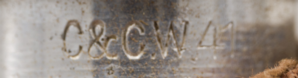 PHYSICAL DESCRIPTION: Standard issue, .8 liter capacity, aluminum construction M31 canteen with a bakelite cup and leather harness with aluminum and steel fittings. Canteen body is dated for maker marked "C&CW" and dated for 1941. A few moth nips to the wool. Nice worn and used example.