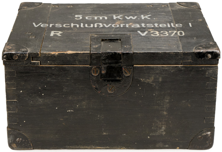 Nice original untouched case. Nicely marked "5cm KwK Verschußvorratsteile I R V3370 ". 23cm x 17cm x 12cm.