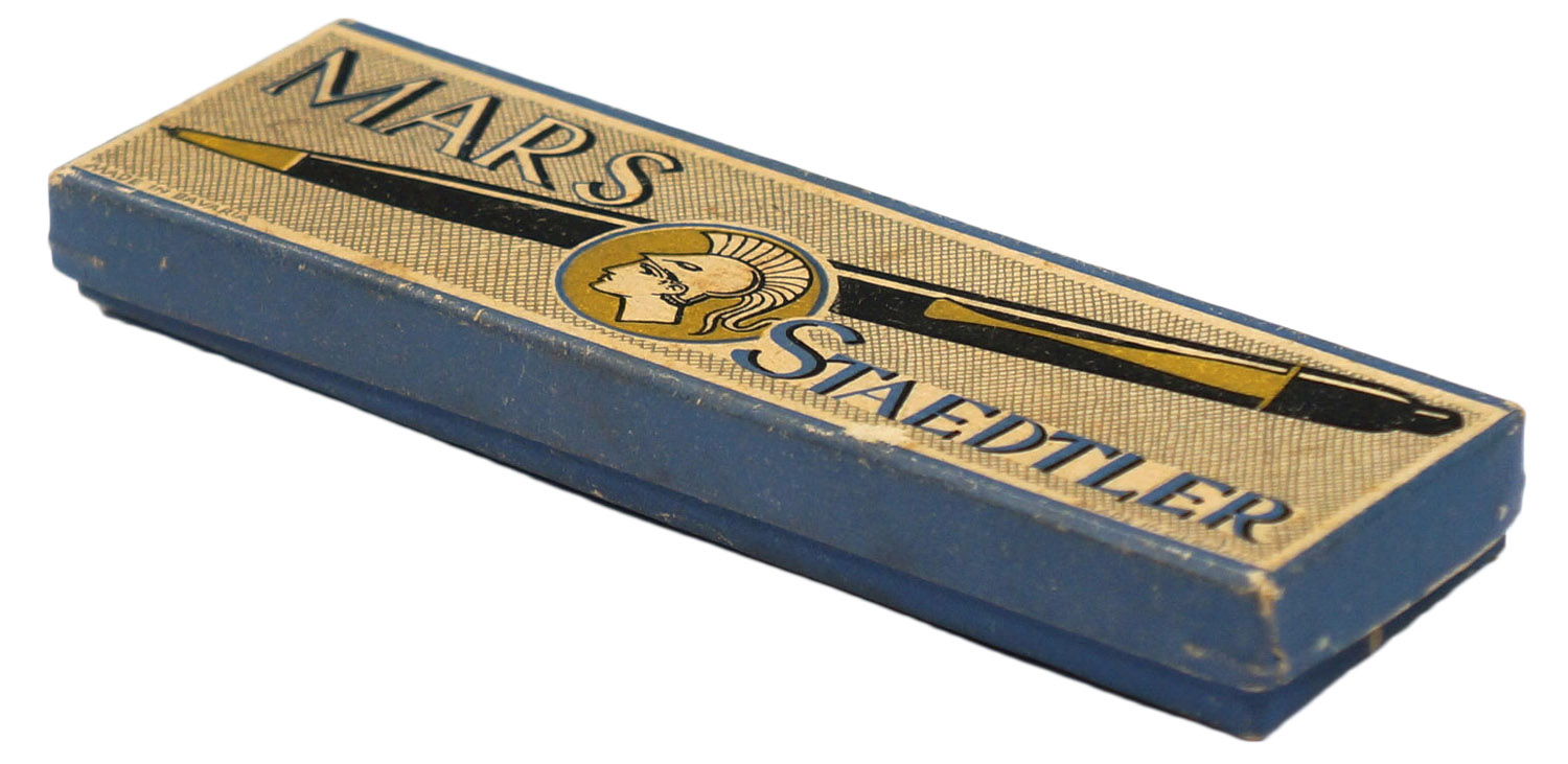 A 13cm x 4cm x 2cm, two piece, paper covered box that is clearly marked to the lid "Made in Bavaria" "Made In Germany". The paper acts as a hinge to the lid, which is fully intact.