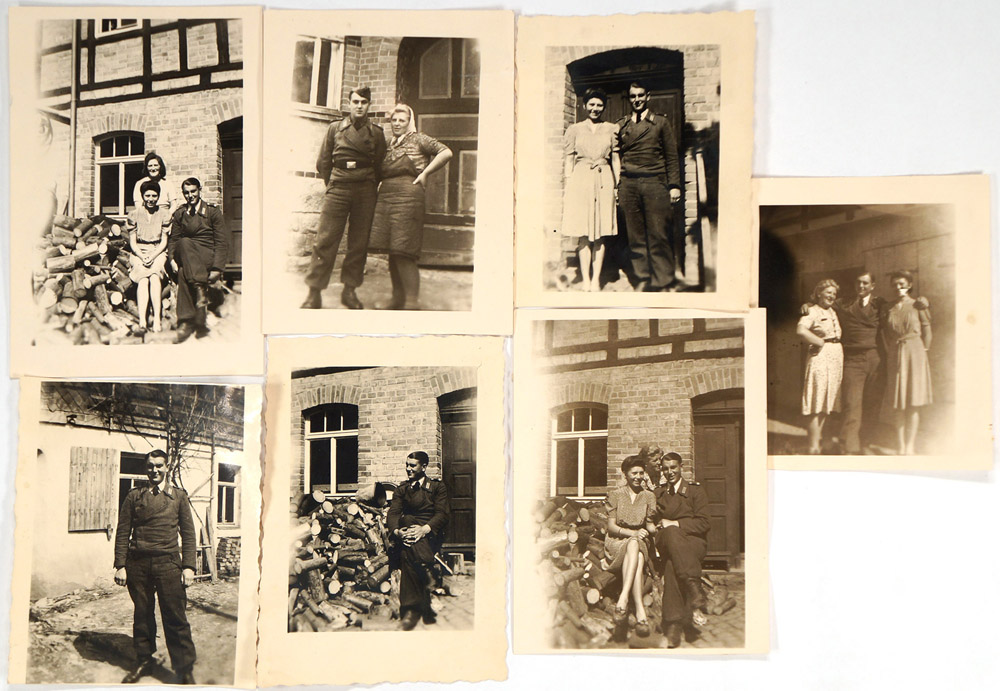 (Photographie)A group of seven, black and white photographs depicting the same Assault Gunner. The photograph sizes range from 6.5cm x8cm 6.5cm x 9cm and 6.5cm x 10cm.