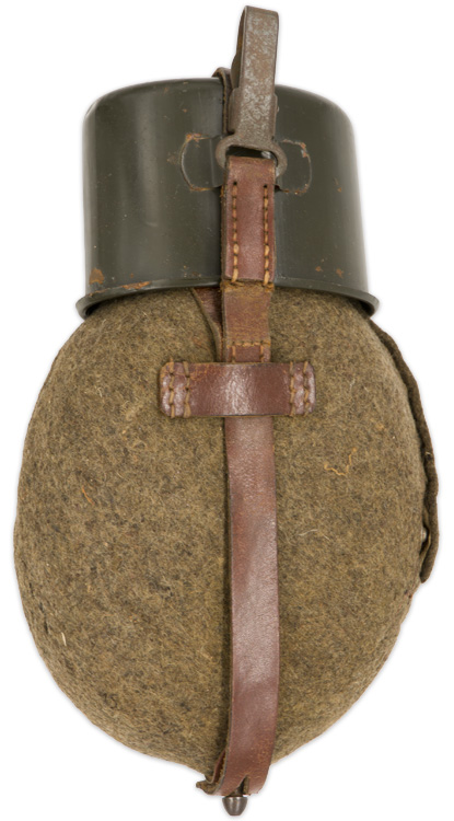 BACKGROUND: Introduced on March 23RD 1931 the standard issue M31 canteen was based on the WWI M1893 and M1907 canteens with minor modifications. Originally the M31 canteens were manufactured in aluminum but later as the aluminum was required for other more critically essential items the canteens began to be manufactured in steel. In late 1940 with the impending German entrance into the North African campaign the standard brown felt cover and leather retaining straps and carrying harness of the M31 canteen were altered to an olive drab felt cover and web straps for longer wear in the tropical climate. Another variant, developed in late 1941, was the replacement of the felt covers with a plastic impregnated wood covering for better durability. When issued the canteens came with an integral carrying straps and harness and regulations prescribed the assorted manners in which the canteen was to be carried with the most common form being to secure it to the bread bag suspended from the load carrying waist belt although other methods were also utilized. With potable fluids being such an essential item for an individuals well-being the canteen must be considered as a very important piece of personal kit.
