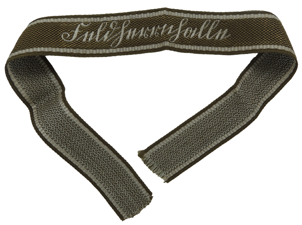 (Feldherrnhalle Ärmelstreiffen)BACKGROUND: The Feldherrnhalle, (Hall of Generals/Heroes), in Munich was the site of the unsuccessful 1923 Beer Hall Putsch in which the NSDAP, Nationalsozialistische Deutsche Arbeiterpartei, (National Socialist German Worker’s Party), attempted to seize governmental power and in which sixteen NSDAP members were killed by the police. After the NSDAP gained power in January 1933 the Feldherrnhalle became a national shrine for the sixteen "assassinated martyrs" of the party. Shortly after the purge of the SA, Sturm Abteilung, (Storm/Assault Detachment), in June 1934 the newly appointed SA-Stabchef, (Chief-of-Staff), Viktor Lutz established the SA-Wachtstandarte, (SA Guard Regiment), to guard the NSDAP’s offices and allotted it the honor title Feldherrnhalle. Sometime in the mid to late 1930's personnel serving with SA-Wachtstandarte Feldherrnhalle were allotted an honorary "Feldherrnhalle" cufftitle. On August 9TH 1942 the 271ST Infantry Regiment, a component of the 93RD Infantry Division, which consisted largely of SA volunteers were also authorized wear of the same "Feldherrnhalle" cufftitle as the SA-Wachtstandarte. On July 1ST 1943 distinctive new shoulder board/strap cyphers were introduced for wear by both the SA-Wachtstandarte and the army’s Feldhernhalle units. In 1943 the 271ST Infantry Regiment Feldhernhalle was detached from the 93RD Infantry Division to form the nucleus of the newly forming 60TH Panzer Grenadier Division Feldherrnhalle and divisional personnel were also allotted the honor cufftitle and shoulder board/strap cyphers. Further expansion and additional units including the PanzerKorps Feldherrnhalle consisting of the Panzer Divisions Feldherrnhalle 1 and 2 were also allotted wear of the honor cufftitle and shoulder board/strap cyphers.