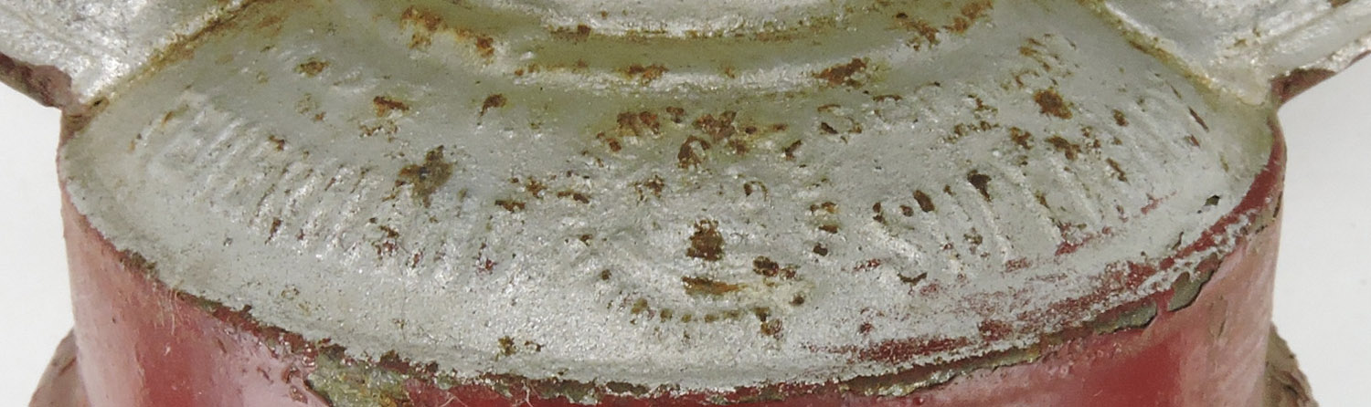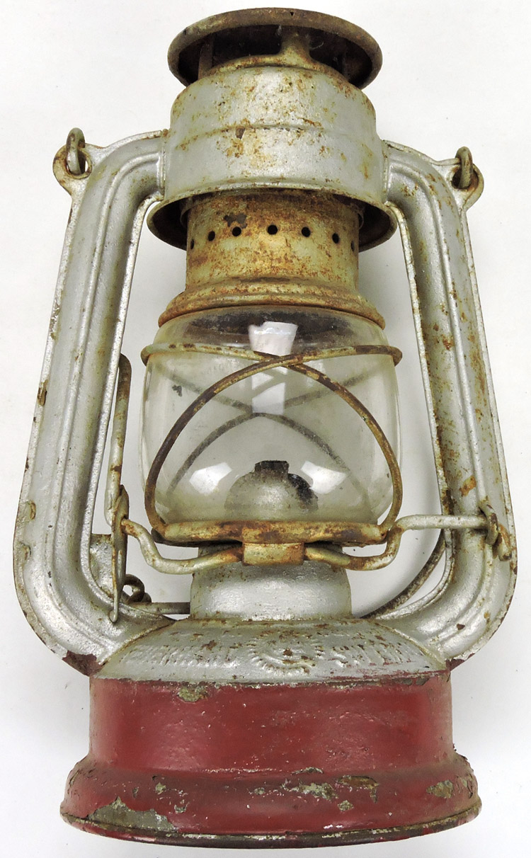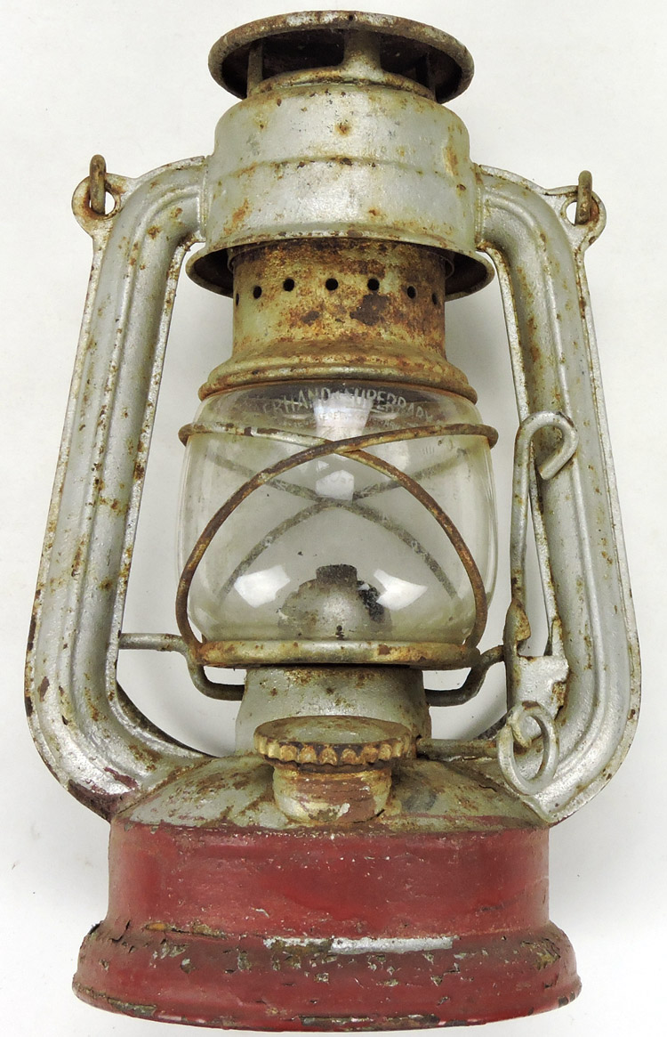 WW2 era German "Superbaby" lantern. Red and silver paint. Possible over paint, not 100% sure.