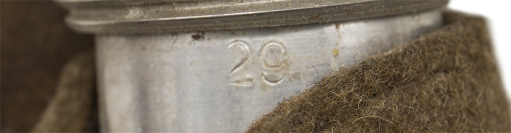. (Feld/Labeflasche für Gebirgsjäger und Sanitäts Truppe)BACKGROUND: During WWII the German army fielded nine Mountain Divisions with an additional six Waffen-SS Mountain Divisions. Generally speaking the Mountain Divisions were specially trained and equipped Infantry Divisions designed for mountainous warfare. Each Division in the German Army of WWII also had Divisional Support units which included a medical unit that normally consisted of two companies, a mobile field hospital and two ambulance platoons. Although the .8 liter capacity, M31 canteens were the standard issue canteen, mountain troops and medical personnel were issued a larger, one and a half to two liter capacity canteen that was based on the larger canteens used by their WWI counterparts. These larger mountain troops/medical canteens were of identical design to the standard M31 canteens but came equipped with a different carrying harness and shoulder strap assembly. Originally the mountain troops/medical canteens were manufactured in aluminum but later as the aluminum was required for other more critically essential items the canteens began to be manufactured in steel. With potable fluids being such an essential item for an individuals well-being the mountain troops/medical canteen must be considered as a very important piece of kit. Of Note: It appears that the mountain troops/medical canteens were also produced in aluminum during the Weimar Reichswehr, (National Defence Force, Circa 1919-1933), era as this example is dated, "29", (1929).
