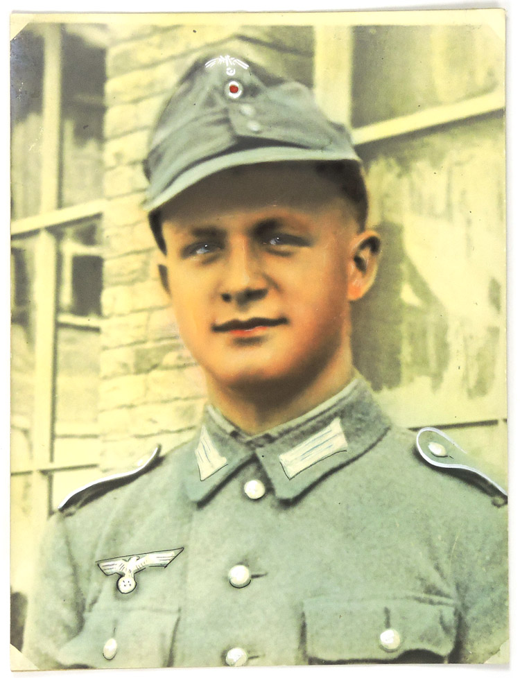 Very nice large size, 30cm x 40cm, color tinted studio done images of a young German soldier. Also included is the original 14cm x 9cm black and white image. Nice!