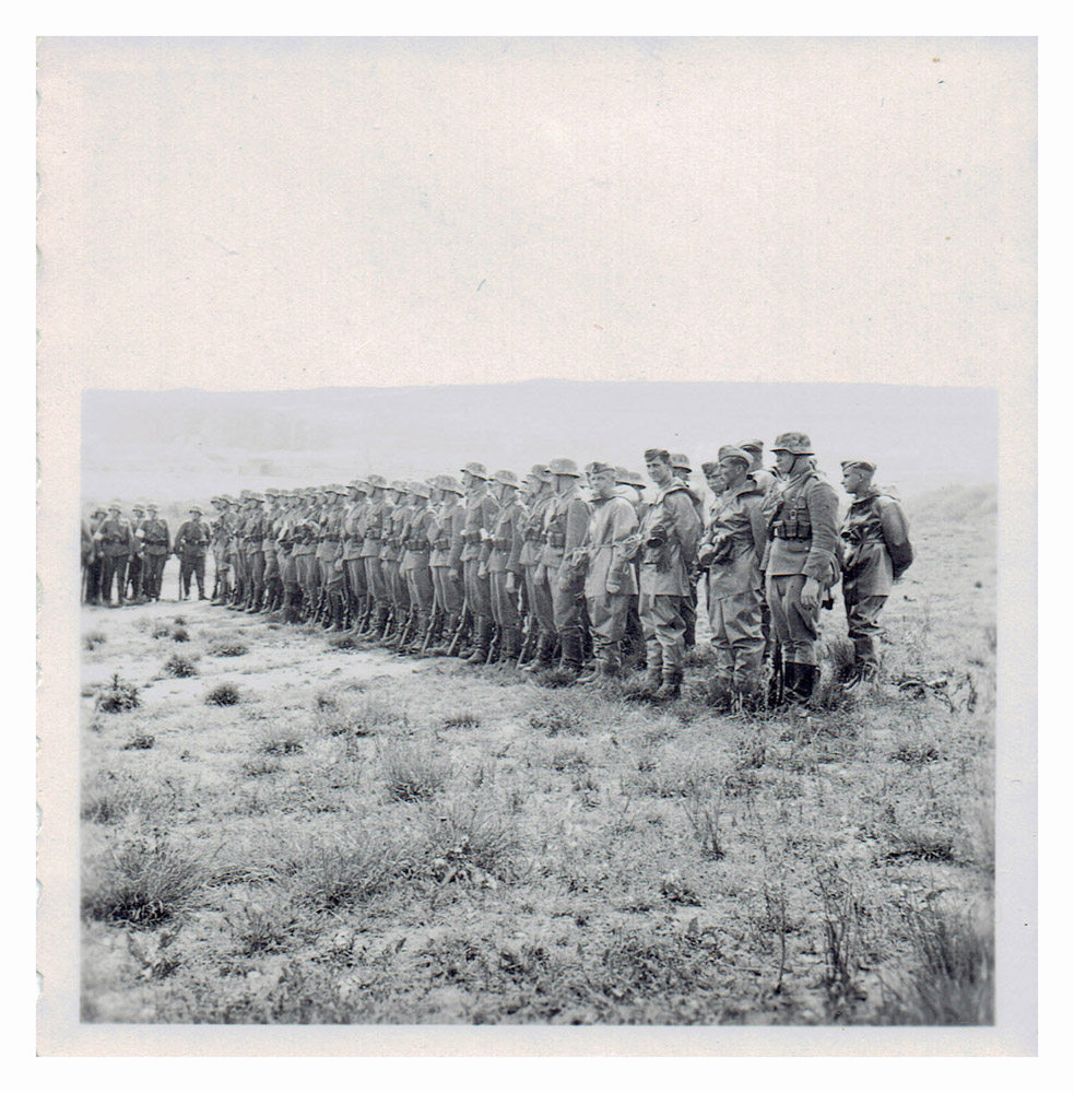 (Photographie)A 6cm x 6cm, black and white photograph. Nice image of a company of Heer soldiers.