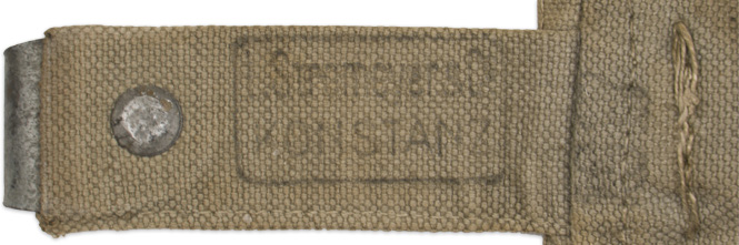 Introduced in 1887 and officially designated as a haversack this canvas pouch was designed for carrying rations, field cutlery utensils and personal items, and was most commonly referred to as the breadbag.PHYSICAL DESCRIPTION: A wartime, canvas constructed breadbag. The two small leather tabs and d-rings that are normally on the back upper corners are missing, but other than that looks all complete. Nice makers stamp. Shows the expected age and use.