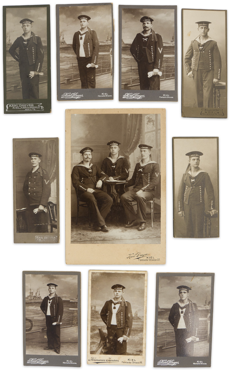 A German Imperial Navy Portrait Photo Grouping to the battleship S.M.S. Schwaben. Group of 10 studio portrait photos of different crewmen of the Schwaben.