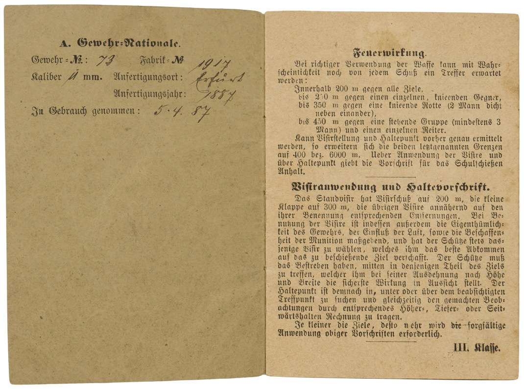A 9.5cm x 13.5cm, soft cover booklet with handwritten information to the front cover and some interior pages.