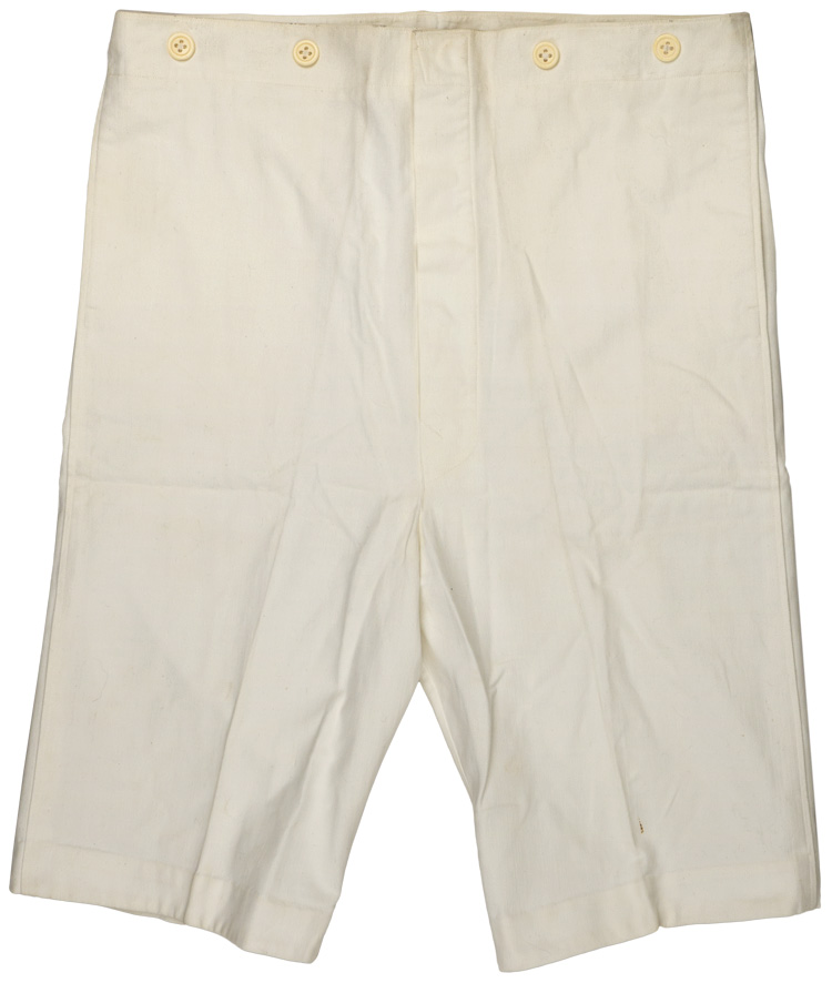 A four piece grouping that includes the cap, tunic, shorts and dickie. The tunic has a chest that measures approximately 36" with a body measuring 23" (58.5cm) long. The short pants have a waist of 30" and an inseam of 10" (23cm).