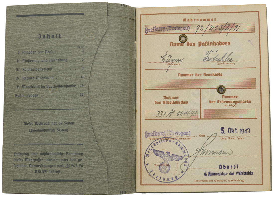 be a repair on the middle medal attachment), shoulder strap, dog tag, mailitarpass and also his Wehrpass from WW2. See photos for details.