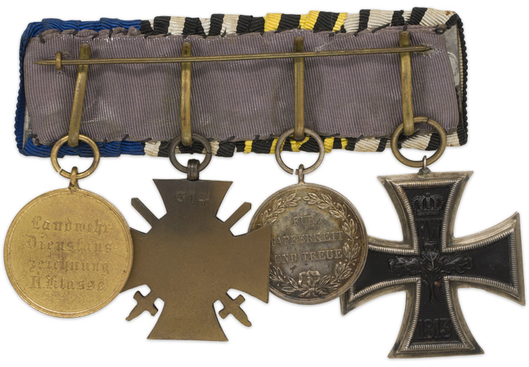 1914 EKII, Wurttenberberg Service, 1914-18 Cross of Honor W/Swords and Lanswehr service medal. Complete with original pinback device.
