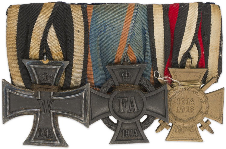 Parade mount 1914 EK2, Frederick August Cross 2nd Class and a Combatants Cross of Honor 1914/18. Complete with original pin back device.