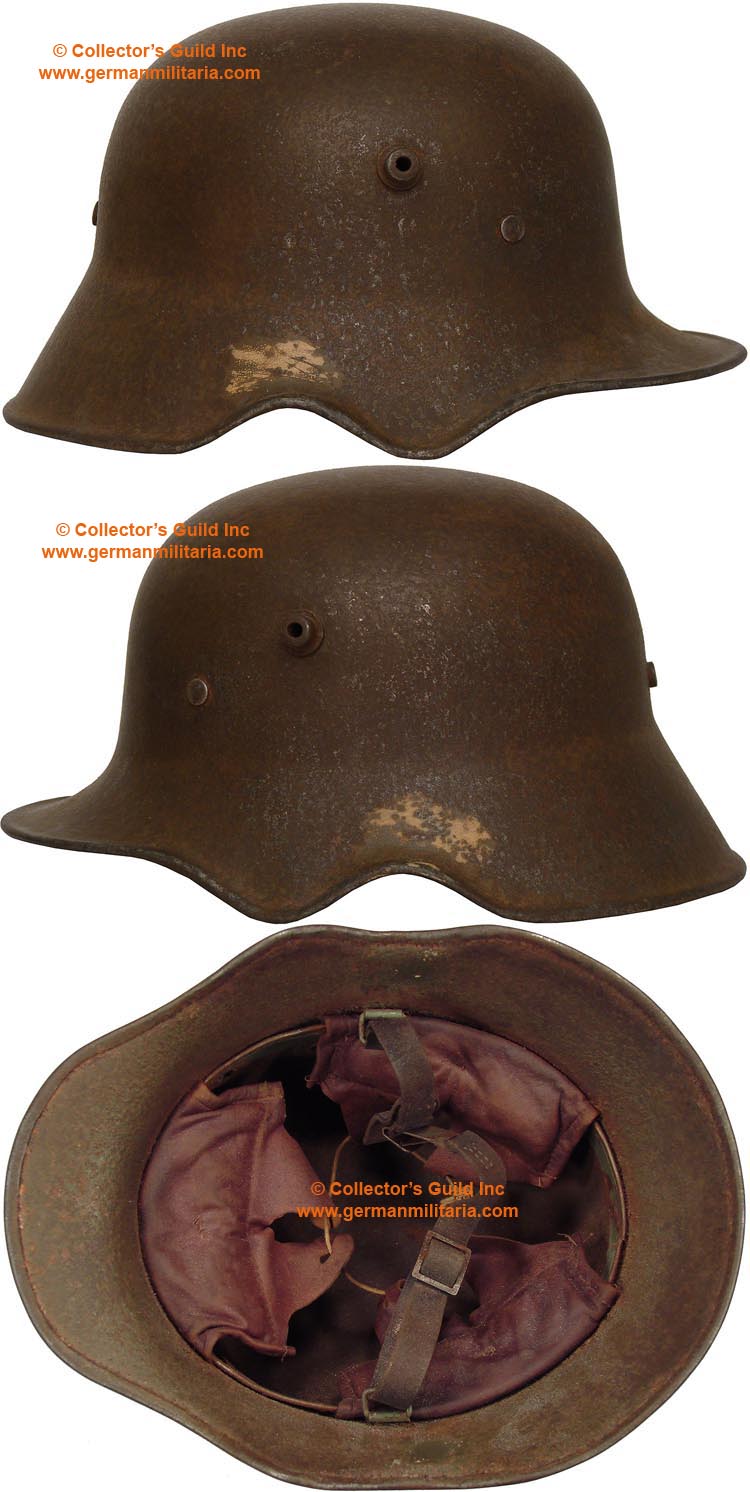 (Stahlhelm M18)BACKGROUND: It is estimated that Germany had produced about 8,000,000 steel helmets by the end of the war in Nov of 1918. The M18 ear cut-out, being the last of the wartime modifications. The helmet was introduced in the summer of 1918 in an attempt to relieve the difficulty in hearing that was being observed with the wear of the M16 and regular M18 helmets. The ear cut-out version was produced in very limited quantities during the war.