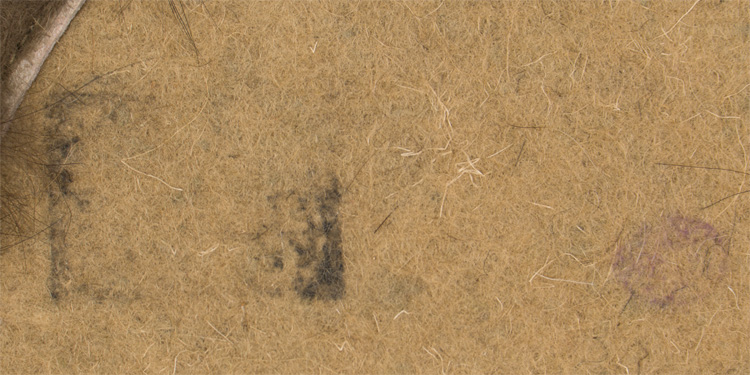 A pair of wool/felt, leather and fur lined leg wraps that measure approximately 44cm long. Each bears four leather straps that correspond with single prong roller buckles. Fur lines the tops of each panel, the strap sides and bottoms of the same panel. The surface shows some moth holes and general wear.