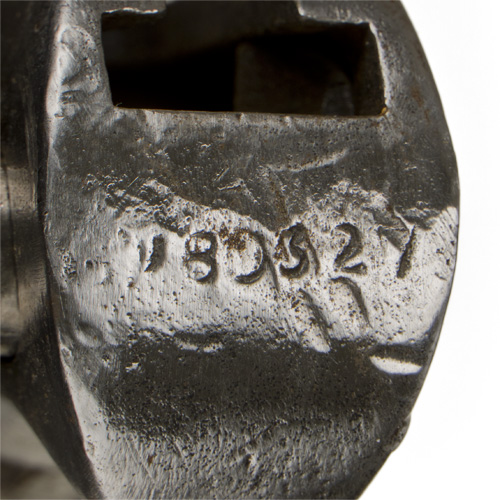 Type 30 bayonet and scabbard. Serial numbers and manufacturer's stamps are evident to the head of the bird's head pommel with a button release. The lightly age-darkened, contoured wraparound wooden grips are fixed with two screws. The straight contoured metal crossguard has a circular muzzle guide. The 40cm fullered blade. Second pattern sheet metal scabbard with paint. The maker’s mark to the ricasso is that of the Nagoya Arsenal.