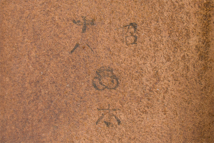 Standard issue, model 30 (1897) ammunition pouches as used by the Japanese navy throughout the war. The 15cm x 10cm, dual pocket, rubberized canvas pouch originally would have held two groups of three five-round clips of 7.7mm ammunition. Hinged top flaps open outward and are each secured by a horizontal closure strap, with stud holes to each end, passing through vertical loops to the flap tops, and attaching to steel studs on either side of the pouches. Two vertical belt loops are sewn to the reverse. The interior is separated into two compartments by a thick divider. The pronounced separation line to their exteriors formed by this division distinguishes them as navy rather than army issue.