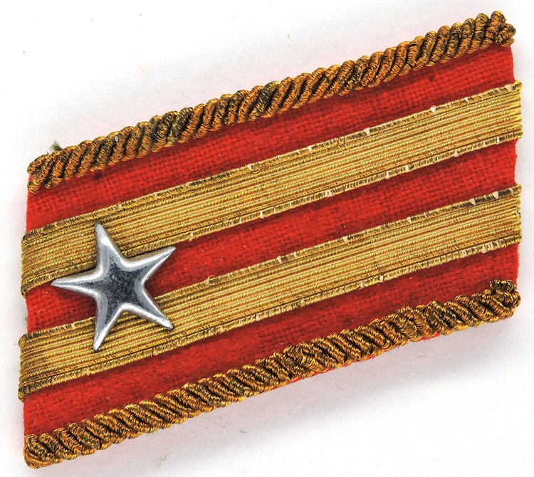 Red wool tab with double gold tress, twisted bullion trim and one metal star. Rank of Major (Model 1943).
